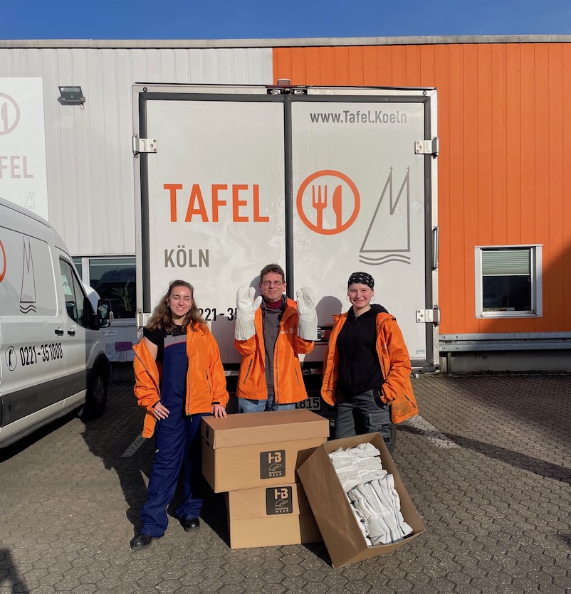 HB Protective Wear hat dem gemeinnützigen Verein „Die Tafel e.V.“ insgesamt 436 Teile übergeben. Dabei handelt es sich hauptsächlich um Bund- und Latzhosen in dunklen, unempfindlichen Farben mit und ohne Reflexstreifen, Kälteschutzhosen für Damen sowie Handschuhe und Parkas. Die Sachen wurden von Thalhausen ins Tafel-Zentrallager nach Köln gebracht und werden von dort an die anderen Verteilstellen und Standorte der Tafel weitergeleitet.